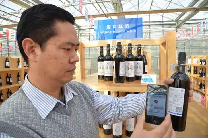 看,就扫一下这瓶红酒上的二维码,包括这款酒的品种年份、酒品特点、酒庄介绍、品质保证、出入境检验检疫的卫生证书、海关的报关单等信息都一目了然,再也不用担心买到假货了。