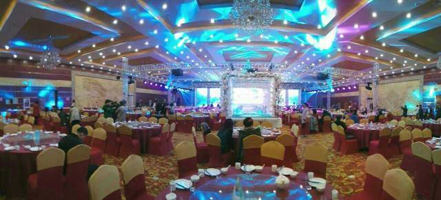 今天龙达温泉酒店婚礼文化园的龙达厅举办了一场90多桌的婚礼庆典!龙达厅面积1400平米、长40米、宽35米、高6米。宴会厅可容纳80桌800人同时就餐。这么大、这么高的宴会厅没有一个柱子,是举办婚礼的顶级场所!